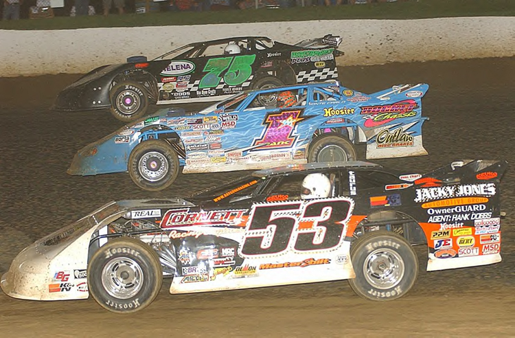Ray races Chub Frank and John Gill at the Florence (KY) Speedway in 2003 -