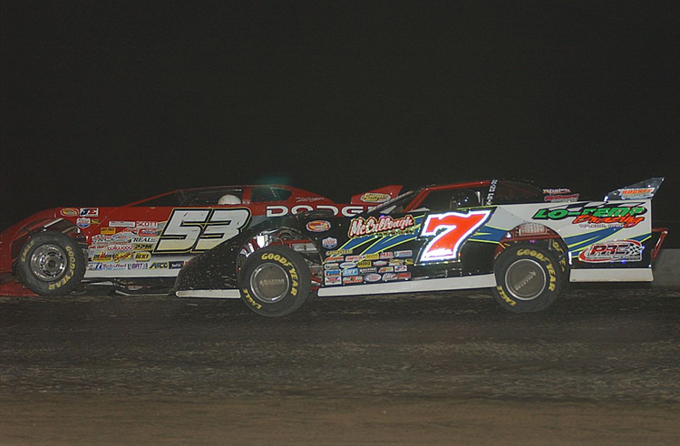Ray races Matt Miller at the Attica (OH) Raceway Park in 2004 -