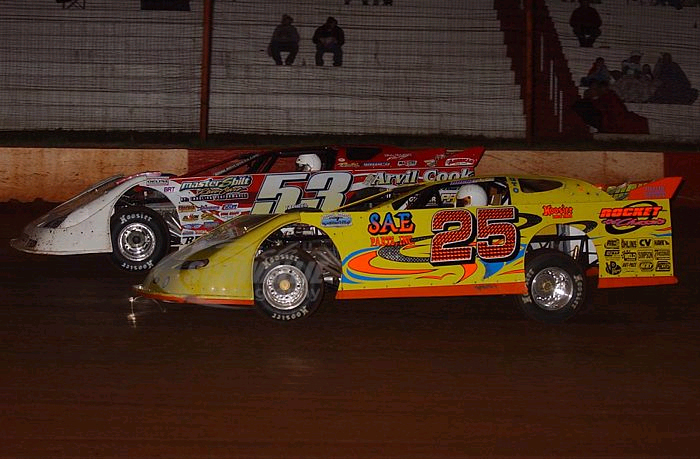 Ray battles Shane Clanton for the second spot at the Dixie (GA) Speedway on March 25, 2006 -